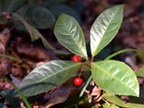 公園はやがて、見上げた視界いっぱいの錦秋となります。紅葉の下では、赤く色づいた南天や仙蓼・藪柑子などの実に年の瀬を感じます →詳細