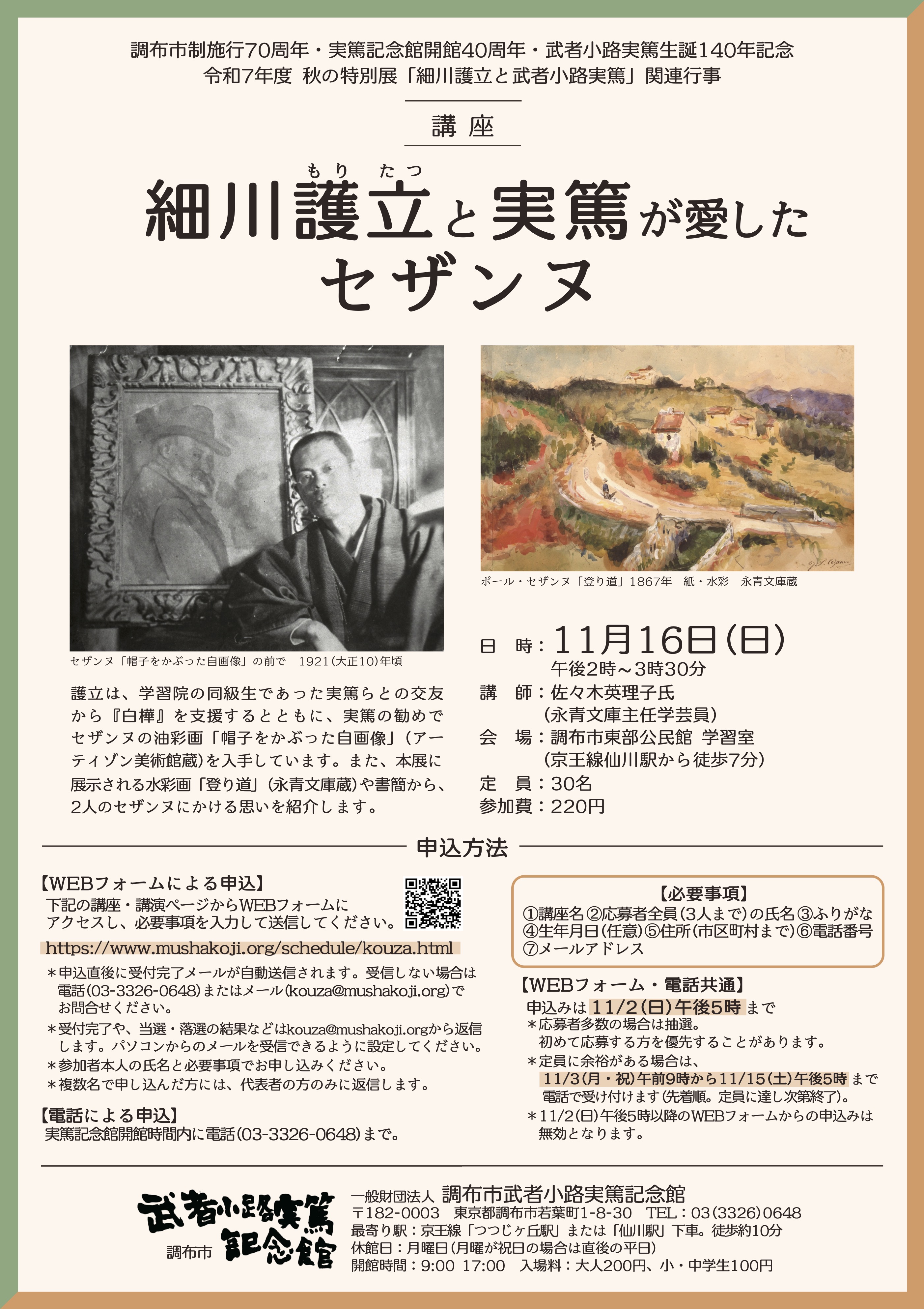 講座「細川護立(もりたつ)と実篤が愛したセザンヌ」