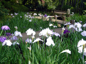 ハナショウブ、ザクロ、ナツツバキ、ナンテン、