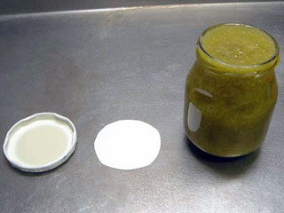 ビンに詰めてフタをしてから、蒸気が上がった蒸し器で30分蒸して、ビンの中の余分な空気が抜きます。蒸し器から出して、冷めたら、ビンの外側をきれいに拭きます。こうしておくと、フタを開けないで、湿度が低くて涼しいところにしまっておけば、常温でもかなり長く保存できます。
